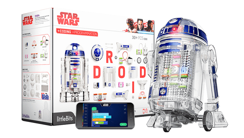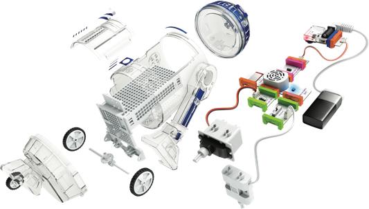 Kids can create their own Droid and bring it to life using littleBits electronic blocks! With the Droid Inventor app, they can control their Droid, give it new abilities with easy block-based coding, and take it on 22+ missions.