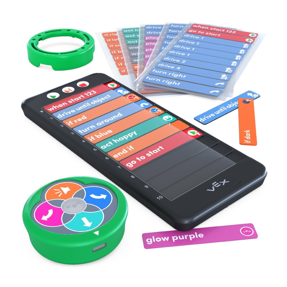 - Insert physical coding cards on the revolutionary VEX Coder, to download programs wirelessly to the Robot - no screens needed!