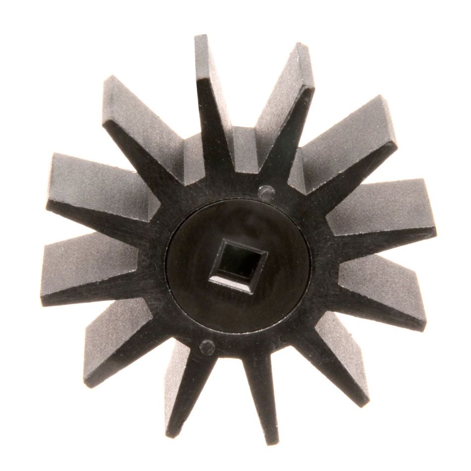 - Hard plastic center with square hole.