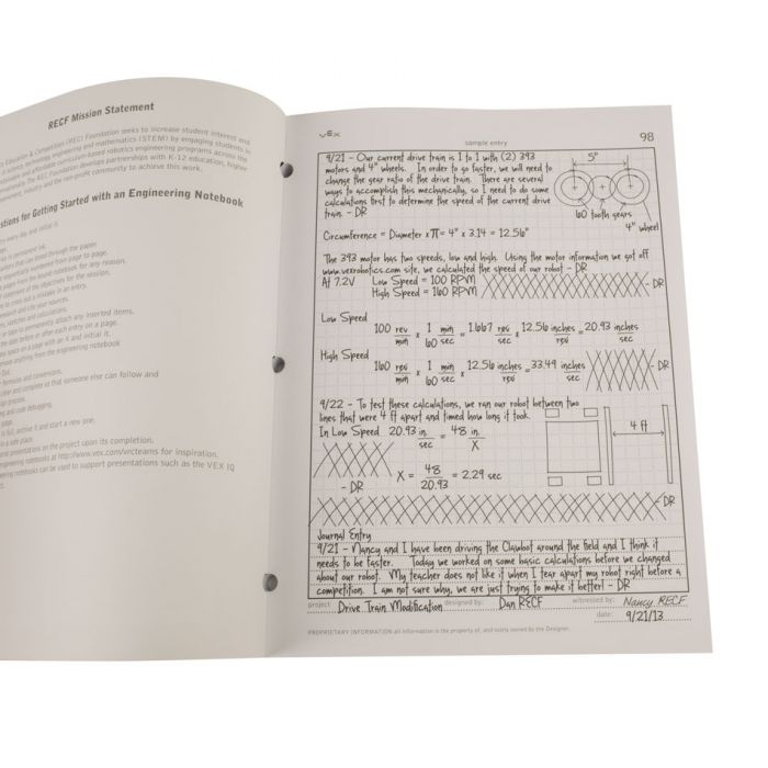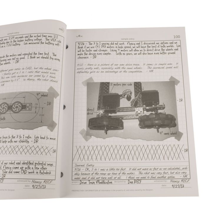 Use the Robotics Engineering Notebook to document the design, construction and iteration of a classroom or competition robot.